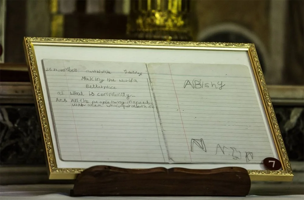 “Dear friends, a Pakistani child called Abish Masih, killed in an attack against the Catholic Church, once wrote in his notebook: ‘Making the world a better place.’ May this child’s dream inspire us to bear courageous witness to our faith, so that together we may be leaven for a peaceful and fraternal humanity.